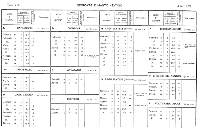 I due team di ricerca hanno lavorato per sfruttare al meglio i dati del passato per ricostruire i trend nevosi nella regione che include gran parte degli Appennini centrali e una parte dell'Appennino meridionale, in particolare il settore Campano Lucano - i settori gestiti dai compartimenti di Napoli, Bari, Pescara e Roma. “Dal servizio idrografico abbiamo recuperato 129 stazioni con una buona disponibilità dati e che coprono il territorio in maniera relativamente omogenea in una fascia altitudinale compresa tra 288 e 1750 metri” racconta Capozzi “Il primo step è stato proprio rendere raccogliere i dati in un formato digitale e facilmente accessibile. Come potrai immaginare, è un lavoro che richiede tanto tempo e poi, una volta digitalizzati i dati, abbiamo iniziato a tirare fuori una climatologia e dei segnali anche di andamento di lungo periodo”. Per i più curiosi, le scansioni degli annali del passato per diverse zone d’italia sono stati raccolti da ISPRA e sono disponibili al pubblico (a questo link: http://www.bio.isprambiente.it/annalipdf/) grazie al “Progetto Annali”.