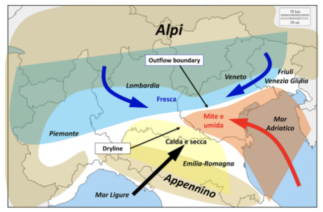 Le masse di aria provenienti da Alpi e Appennini tra gli ingredienti per la formazione di tornado in Pianura Padana