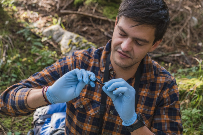 Una specie di cui Luca si è occupato negli ultimi anni è la salamandra di Aurora “una sottospecie della salamandra alpina estremamente localizzata che vive solamente in 26 chilometri quadrati in tutto il mondo, sull'altopiano di Sette Comuni, a cavallo tra l'altopiano del Vezzena in Trentino e la zona di Asiago”. Come ci spiega, si tratta di “una sottospecie rimasta isolata in queste aree e che è uno dei vertebrati più rari d'Italia, se non il vertebrato più raro d'Italia”. Anche in questo caso, la crisi climatica ha avuto un impatto sulla sua conservazione, infatti “la tempesta Vaia nel 2018 ha impattato fortemente le foreste in cui questa salamandra vive portando a un'importantissima distruzione degli habitat”.
