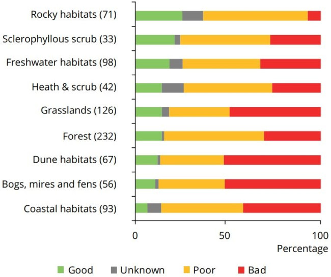 Nel 2020 l’Agenzia Europea per l’Ambiente pubblica un rapporto dal quale emerge come l’81% degli habitat europei sia in cattive condizioni. Se le foreste mostrano deboli segnali di miglioramento, habitat come le zone umide o le praterie versano in condizioni critiche. Le popolazioni di insetti - soprattutto impollinatori - e di uccelli delle aree agricole sono in drastico calo (come abbiamo già visto in questo articolo). Le implicazioni travalicano la questione ambientale; solo per fare due esempi a tutti noi vicini: la maggior parte dei suoli è in cattive condizioni e continua a degradarsi, rendendoli meno produttivi e più dipendenti da prodotti chimici e le città diventano sempre più invivibili. Tutto ciò mette le nostre vite, il nostro benessere e il nostro futuro a serio rischio.