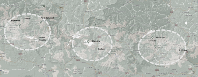 Le perforazioni saranno effettuate nelle seguenti aree: Besiberri (Besiberri 2600m), Circ de Pessons (Clot de la Menera 2492m), Vignemale (Col de la Cerbillona 3198m), Ardiden (Ardiden - Lac Grand 2460m), Monte Perdido (Pic Marboré 3251 m), Pica d'Estats (Clot de Broate 2800m), Pica d'Estats (Montcalm 3078m) e Maladeta (Pico de Coronas 3297m).