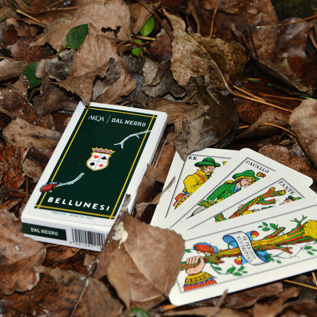“Un mazzo per i bellunesi e per i forestieri, per gli escursionisti e i tipi da baita, per chi vive in scarponi e per chi li indossa una volta l’anno. Un mazzo di carte regionali per i boschi e per chi li anima”. Così vengono descritte le Bellunesi, un mazzo di carte regionali prodotto dalla collaborazione tra Dal Negro e Akqa, dedicato a Belluno e mirato al sostegno della protezione delle foreste dall’epidemia di bostrico.