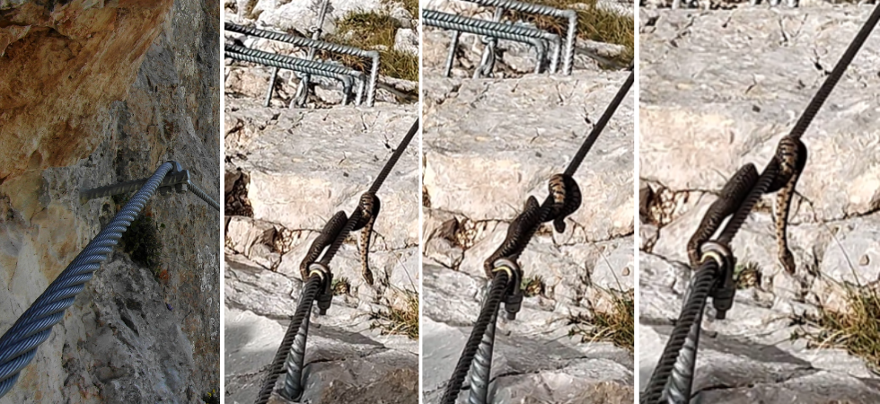 Una vipera cade dall'alto sul cavo della ferrata: un episodio singolare che ricorda come comportarsi quando si incontra il serpente