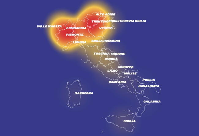 Rimanendo sul tema geografico, è molto interessante considerara la ripartizione territoriale degli interventi tra le diverse regioni: a dominare la classifica sono la Valle d'Aosta (con il 13,8% degli interventi), la provincia autonoma di Trento (con il 12,5%) e quella di Bolzano (con il 10,8%). Dati evidentemente strettamente correlati con i grandi flussi turistici: per confronto, i soccorsi in Friuli Venezia Giulia sono stati il 2,9% e in Abruzzo l'1,6%.