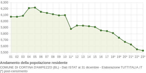 Al 1° gennaio 2024, Cortina contava 5.529 abitanti (fonte Istat), un dato che segna una continua decrescita dal 2011, con previsioni che indicano un futuro prossimo sotto i 5.000 abitanti residenti. Il turismo è una risorsa o un pericolo?