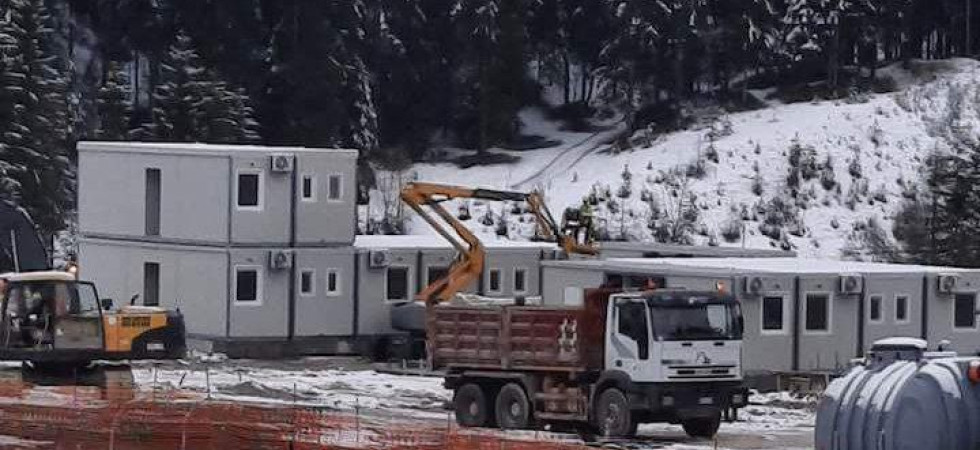 A Socol, località a breve distanza di Cortina, sono arrivati i primi container per realizzare la sede del villaggio operaio finalizzato a ospitare i circa duecento lavoratori che si occuperanno di mettere in piedi la discussa pista da bob.