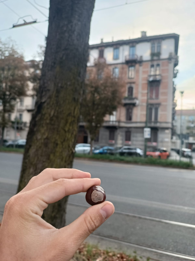 Proprio come facevo da bambino, quando vedo una “castagna matta” sul marciapiede (e non passa nessuno) le tiro una gran pedata. È più forte di me. Dopo essermi guardato attorno per accertarmi di non essere visto, prendo una breve rincorsa per dare slancio alla gamba destra.