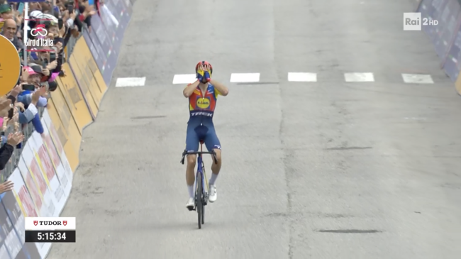 «Quando stamattina si è deciso di andare in fuga, non ero felice», ha detto oggi dopo aver vinto, come se si sentisse in colpa per aver ottenuto in prima persona un risultato che avrebbe preferito aiutare qualcun altro a ottenere. Ha conquistato la prima delle quattro o forse cinque tappe in cui da oggi a fine Giro si sarebbe finito per provare a far vincere Ciccone.