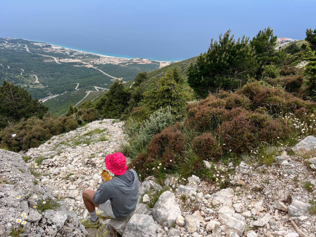 Un ragazzo attende l’arrivo del Giro d’Italia sulla salita di Llogara, all’interno dell’omonimo parco nazionale. La costa verso cui guarda, tra Vlorë e Himarë, è una sorta di ibrido tra le selvagge coste della penisola di Karaburum e i resort del sud dell’Albania.