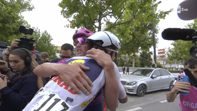 Il finale è stato la fotocopia di quello della tappa numero 1, con Ciccone e Vacek nei ruoli che furono di Ciccone e Vacek (ovvero quelli degli impeccabili apripista), Corbin Strong nel ruolo che fu di Wout van Aert (ovvero quello di primo battuto da Pedersen, cioè di secondo classificato) e Orluis Aular nel ruolo che fu di Orluis Aular (ovvero di terzo).