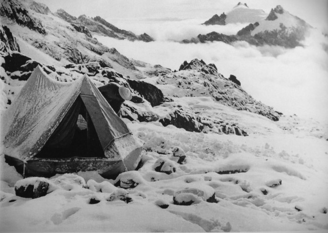 “Calpestai la prima neve, che in quegli ultimi giorni di bel tempo si era andata elevando verso l’ultimo zoccolo roccioso, quando il sole sfrecciando dietro il Bolivar arrivava a colpire la punta estrema del Toro, arrossandola come un incendio. Misi lo zaino, pesante per la macchina da presa, su di una roccia e calzai i ramponi: mordevano bene e scricchiolavano sul ghiaccio vetroso che rinchiudeva minuscoli ciottoli di granito, ma il loro suono mi risvegliò. Fino allora io ero andato dormendo per le montagne, mi ero svegliato dormendo, avevo camminato dormendo e avevo pensato soltanto con una coscienza di sogno all’impresa che mi accingevo a compiere da solo. Il mio autentico risveglio fu di paura. La montagna era là sopra di me come una qualunque montagna con tutti i suoi pericoli, aumentati dall’assoluta solitudine e dall’ignoto, e non aveva niente di umano. Ed io in quel momento mi sentii troppo umano”.
