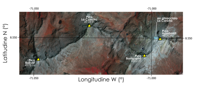 Sono considerazioni di questo tipo quelle che hanno portato a declassare l’ultimo ghiacciaio del Pico Humboldt, la seconda cima delle Ande Venezuelane, a glacionevato. Quella minima placca bianca che compare nelle immagini satellitari è morta, non produce nuovo ghiaccio, non si muove ed è inevitabilmente destinata a scomparire nei prossimi anni. Un fossile climatico alle ultime battute della sua esistenza.
