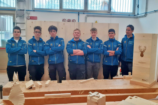 Il tutto è iniziato l’anno scorso: come sopradetto, la scuola è molto legata alla filiera locale, infatti acquistiamo materiale locale e certificato PEFC per i nostri laboratori (siamo stati la prima scuola al mondo a scegliere un approccio di Catena di Custodia certificata e crediamo che sia fondamentale educare in questo senso coloro che un giorno saranno il futuro della nostra imprenditorialità). Durante i diversi incontri e uscite con le segherie il problema dell’eccesso di legno azzurrato era evidente. Come scuola abbiamo deciso quindi di acquistare solo quello, in segno di solidarietà. Utilizzandolo quindi per le esercitazioni nei nostri laboratori di falegnameria, parecchi studenti hanno iniziato ad apprezzarlo e qualcuno persino lo selezionava appositamente per creare arredi particolari. Ecco quindi l’idea venuta dai ragazzi: perché non lo utilizziamo e promuoviamo come alternativa “esteticamente wow”, come ha detto uno studente?