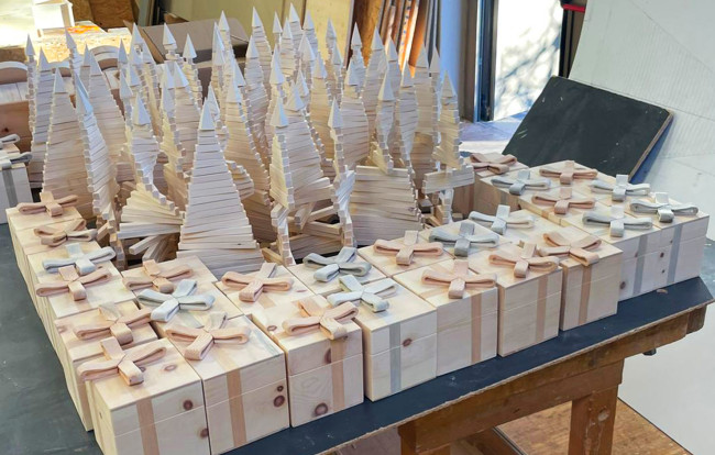 Da settembre la scuola ha realizzato diversi oggetti in azzurrato, oltre ai tavoli per la zona VIP del Tour de Ski e le decorazioni di Natale per il Comune di Tesero.
