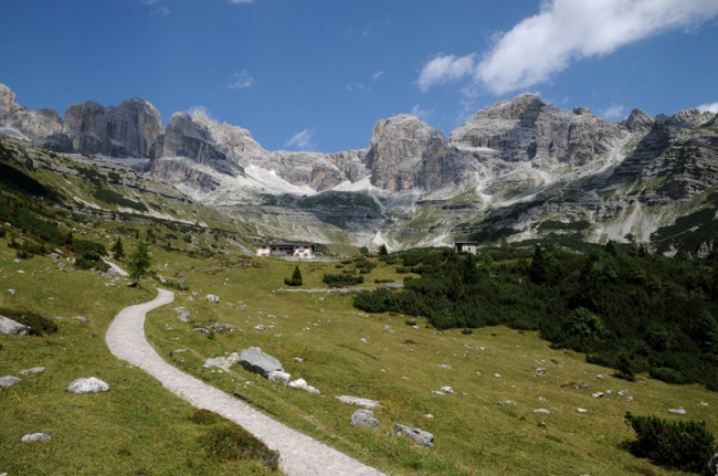 La val d’Ambiez è un angolo spettacolare e poco conosciuto delle Dolomiti di Brenta, che sono parte a loro volta delle Dolomiti Patrimonio dell’Umanità Unesco. La valle, che nella sua parte superiore ha un tipico aspetto glaciale, è ricca di biodiversità e presenta anche un luogo di particolare interesse geologico, il Cimitero dei Fossili, a pochi minuti di distanza dal Rifugio Al Cacciatore: parliamo di un giacimento di rocce che portano impressa l’impronta di molluschi del genere Megalodon, databili 195 milioni di anni fa, che testimonia la presenza in questa parte delle Alpi del mare tropicale da cui sono nate le Dolomiti.