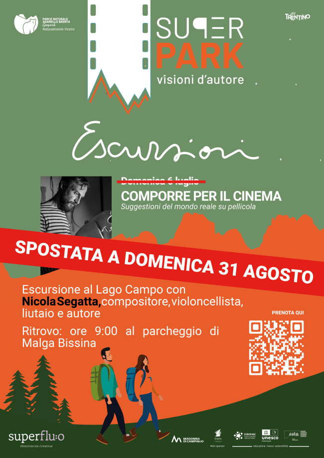 Nicola Segatta, nato a Trento nel 1982, violoncellista, compositore, liutaio, organizzatore di eventi, sarà l’ospite dell’“escursione d’autore” del 6 luglio in Val Daone, in cartellone per Superpark, la manifestazione estiva del Parco Naturale Adamello Brenta organizzata assieme a Superflùo e con il sostegno di Trentino Marketing e delle APT locali.