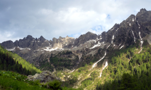 Dalla località Tedon, punto di partenza dell'escursione proposta, il sentiero n° 332 si inoltra subito nel bosco, con evidenti indicazioni e una pendenza regolare che consente di prendere ritmo senza eccessivo affanno. La prima parte dell’escursione è dominata dalla copertura forestale, con abeti e larici che filtrano la luce, creando un ambiente fresco e raccolto, particolarmente piacevole nelle giornate estive. Il fondo è generalmente buono, anche se in alcuni tratti può risultare umido o segnato da radici affioranti, tipiche di queste quote. Il rumore dell’acqua accompagna a tratti il cammino, segno della presenza di rii e impluvi che scendono verso il fondovalle. Man mano che si sale, il bosco tende ad aprirsi, lasciando spazio a radure sempre più ampie, mentre il cammino alterna tratti di sentiero e pista forestale. Qui il paesaggio cambia gradualmente: le pendenze si addolciscono, l’orizzonte si allarga e compaiono le prime vedute verso le dorsali rocciose superiori, che si distendono con i loro caratteristici profili. Il passaggio dall’ambiente forestale a quello prativo avviene quasi senza soluzione di continuità, ma è percepibile nella qualità della luce e nei colori. Il sentiero continua a salire con andamento logico, senza mai presentare difficoltà, rendendo l’itinerario adatto a tutti gli escursionisti, anche ai bambini. Si raggiunge così il Ponte Campivelo (1499 m) e si attraversa il rio Calden, superando la soglia glaciale della valle per raggiungere, dopo un lungo tratto nel bosco, una suggestiva piana alluvionale, con i meandri del torrente che rendono l’ambiente di una serenità disarmante. Manca ormai poco, si deve solo salire sul colle morenico dove si trova il rifugio Caldenave, oltre il quale si nasconde un’altra piana alluvionale, in un contesto aperto e armonioso, una conca verde circondata dai rilievi che da Cima Orsiera, passando per Cima Trento, arrivano fino a Cima Caldenave. Il paesaggio invita alla sosta, non solo per la presenza del rifugio, che apre in genere a metà maggio, ma per l’equilibrio complessivo del luogo. Il rapporto tra elementi naturali e presenza umana appare misurato, mai invasivo. Il rifugio stesso conserva un carattere autentico, lontano da alcuni eccessi di infrastrutturazione comuni sulle Alpi, e rappresenta un punto di osservazione privilegiato sul territorio circostante.