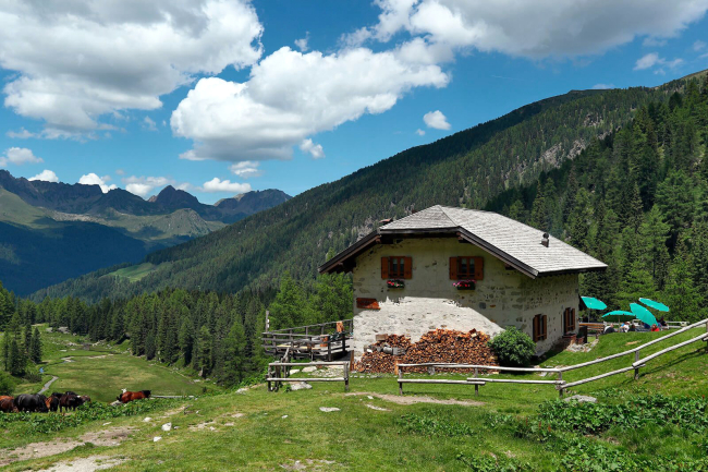 È in questo contesto che si sviluppa un bell’itinerario che, dalla località Tedon, nel cuore della Val Campelle, conduce al rifugio Malga Caldenave "Claudio e Renzo", uno dei presìdi più rappresentativi dell’area, a 1792 metri di quota in una laterale della valle verso Cima d’Asta. Ma prima ancora della descrizione del percorso, vale la pena soffermarsi sul valore culturale di questo luogo. Malga Caldenave, infatti, non è soltanto un punto di ristoro o un riferimento escursionistico: è una testimonianza viva della storia alpina della valle. Originariamente alpeggio, la struttura ha mantenuto nel tempo un forte legame con le attività tradizionali, pur evolvendosi in rifugio, e oggi è un luogo di incontro tra escursionisti e pastori, memoria e contemporaneità. Qui si incrociano storie di lavoro stagionale, di gestione del territorio, di una montagna che non è mai stata solo scenario, ma spazio vissuto. Le vicende della Grande Guerra, che ha lambito queste zone con linee logistiche e presenze militari, più che con grandi scontri, hanno lasciato tracce meno evidenti ma comunque presenti, soprattutto nella toponomastica e in alcune strutture residuali. Frequentare questi luoghi significa quindi attraversare anche una stratificazione di significati, dove il paesaggio naturale e quello culturale si intrecciano in modo continuo.