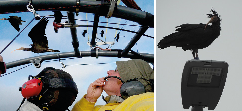 La rotta migratrice che impegna gli Ibis, parte dall’Alta Austria e dalla Baviera conducendo fino alla Toscana meridionale, passando (spesso) per il Trentino-Alto Adige appunto. Per farlo però serve che qualcuno insegni agli uccelli la rotta da seguire perché la conoscenza della stessa non è innata, ma è indispensabile che un altro uccello più esperto, la tramandi agli esemplari immaturi. A tale scopo alcuni piccoli sono stati allevati da due genitori umani, dopodiché i giovani uccelli hanno seguito i loro "foster parents" ovunque, anche se uno di questi era passeggero su un deltaplano a motore.
