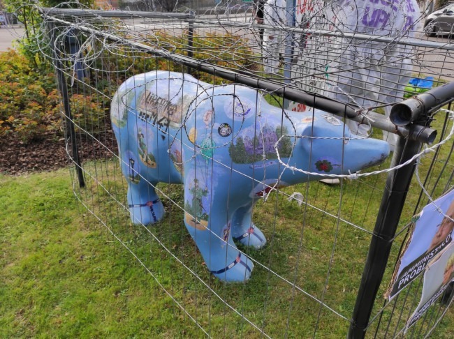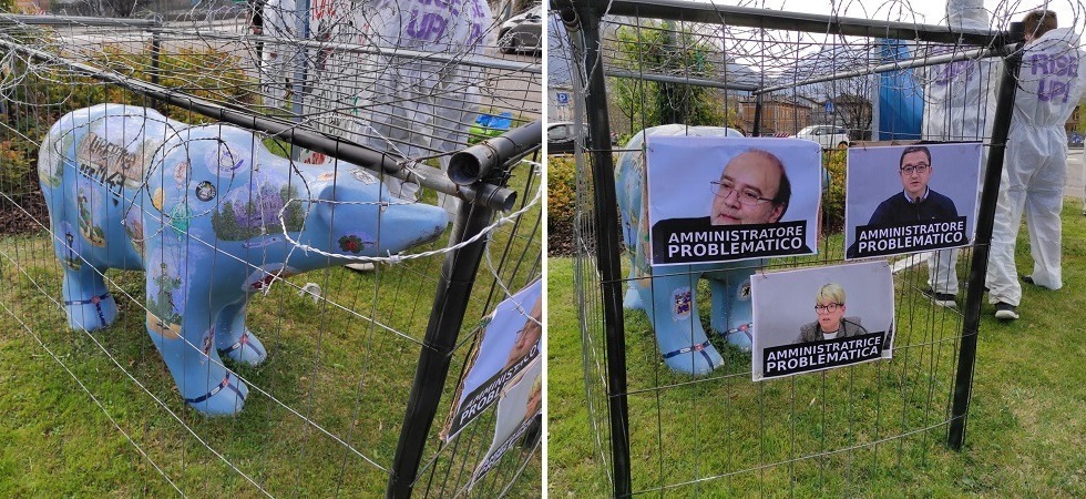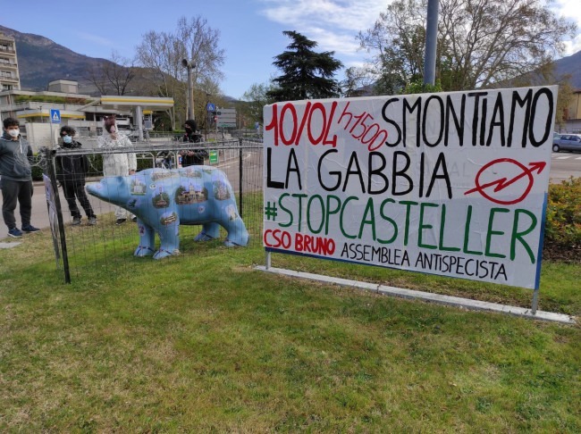 Riparte la campagna “Stop Casteller”, ingabbiata simbolicamente la statua alla rotatoria del ponte di San Lorenzo. Gli attivisti: “Non ci fermeremo fino a quando gli orsi non saranno liberati”