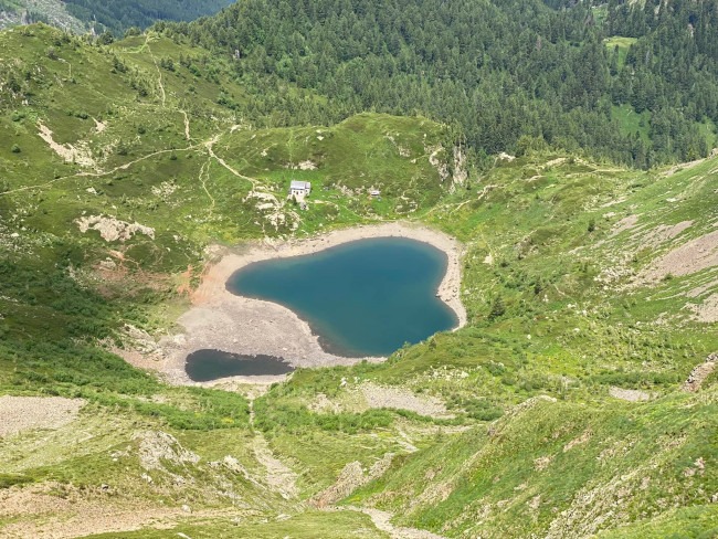 Il secondo scatto è quello del Lago Erdemolo che si trova a 2 mila metri di quota nel Lagorai in Val dei Mocheni. La foto dove si presenta già ''separato'' è stata scattata ieri, 18 giugno, e da verifiche con l'attuale sindaco di Palù del Fersina e quello della passata legislatura il responso è stato unanime: sono livelli che si raggiungono a metà estate, a fine luglio (QUI APPROFONDIMENTO).