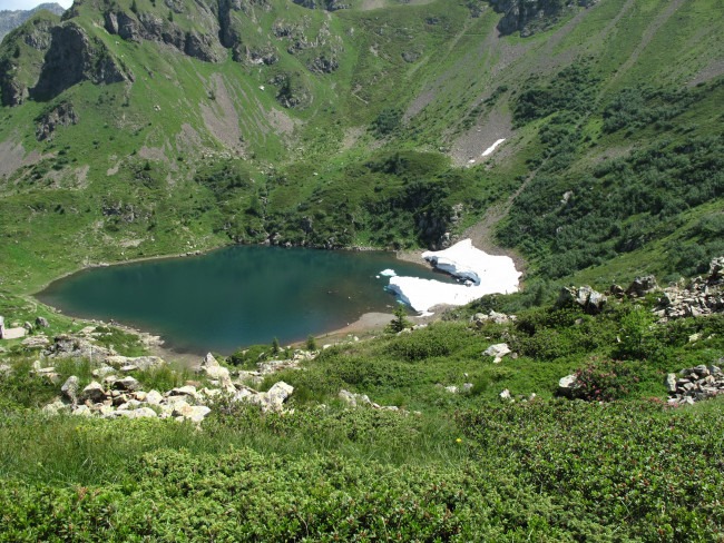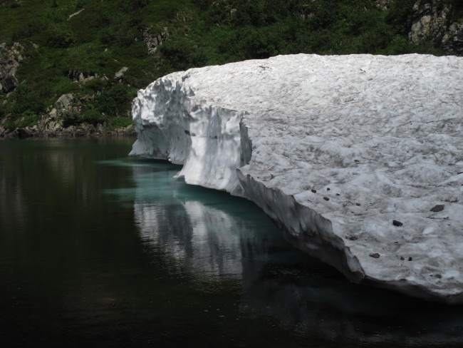 In serata, poi un lettore, Augusto Dal Piaz che ringraziamo, ci ha fatto avere degli scatti dello stesso laghetto alpino datate 24 giugno del 2013 (quindi tecnicamente una settimana dopo nel raffronto). Il confronto è impietoso. Nel 2013 era ben evidente l'accumulo di ghiaccio e neve che storicamente rimane visibile per tutta l'estate. Oggi, di quell'accumulo non v'è traccia e addirittura il laghetto si è già separato.