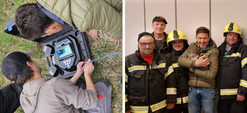 Grazie alla tecnologia di una telecamera a sonda fornita dalla Huber & Feichter GmbH, il felino è stato individuato rapidamente.