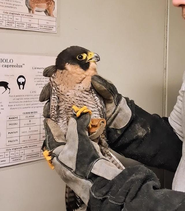Trovano un falco pellegrino e allertano il Cras (FOTO), poi scatta l'appello: "Si cerca il proprietario: aiutateci"