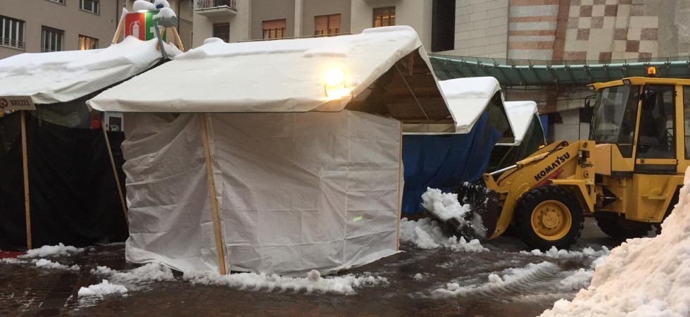 Neve in Trentino, giornata di disagi e anche il mercatino è costretto ad alzare bandiera bianca