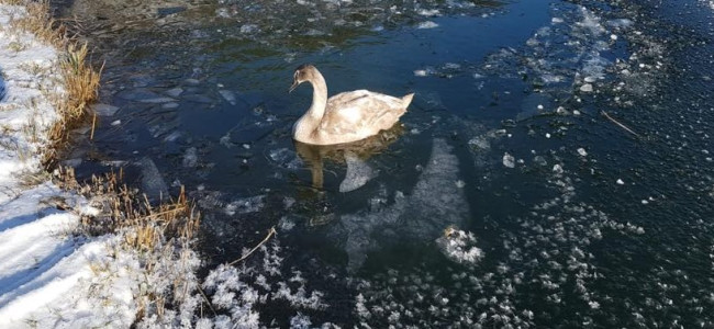 Il grande freddo di questi giorni sta facendo precipitare le temperature e nella notte in paese sono andate sotto gli 11 gradi sotto zero e la temperatura massima, nelle ultime 24 ore, è stata zero gradi. Ecco spiegato il rapido congelarsi del laghetto posto poco fuori dall'abitato e usato, durante l'anno, per la pesca sportiva. Nella notte, però, un cigno che si trovava nel piccolo specchio lacustre è rimasto bloccato nel ghiaccio. Provava ad alzarsi in volo ma le zampe erano rimaste sotto la superficie ghiacciata del laghetto e, nonostante il grande dispendio di energie per tentare di liberarsi, non era riuscito a rompere il ghiaccio circostante.