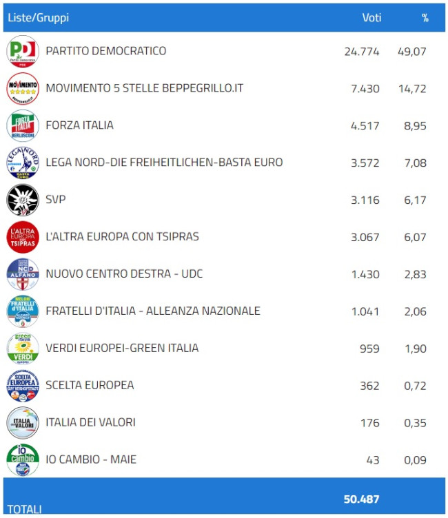Per il confronto ecco i risultati delle elezioni europee del 2014
