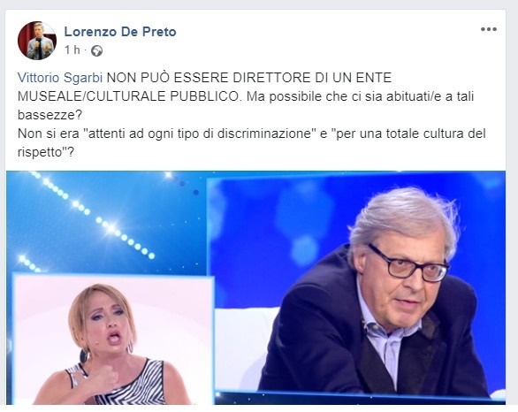“Le parole che abbiamo sentito dall'onorevole Sgarbi in quella trasmissione – ha spiegato De Preto – alcune persone se le sentono purtroppo dire tutti i giorni e noi quotidianamente denunciamo. Lui però sa benissimo dal punto di vista scientifico che l'identità di genere può non coincidere con il sesso biologico e tanto meno con il sesso genitale. Fa finta di non sapere perché è disposto a tutto questo per mantenere un certo tipo di immagine”.
