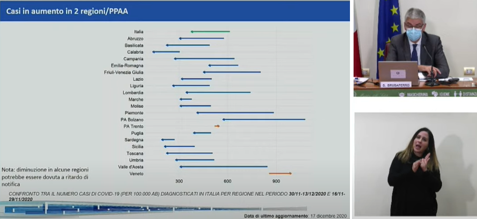 “Il dato che voglio rimarcare – sottolinea Brusaferro – è il grande impegno delle Regioni, anche di quelle che avevano acculato ritardi o delle difficoltà nel raccogliere dati stanno nettamente migliorando”. Ciò dimostra che alcune criticità ci sono state e continuano a esserci, benché “in miglioramento”. Come già anticipato Trentino e Veneto sono gli unici due territori dove i contagi, rispetto alle settimane precedenti, sono in aumento. Nella Provincia di Trento però preoccupano le ospedalizzazioni. Anzi, stando alle proiezioni nell’arco di un mese la situazione trentina non migliorerà e resterà ben al di sopra delle soglie critiche con la possibilità che i posti letto vengano saturati. “In molte Regioni – afferma il presidente dell’Iss – c’è ancora sovraccarico, cioè non si riesce a garantire tutti i servizi richiesti per bisogni di salute legati ad altre patologie”, il Trentino è fra queste.