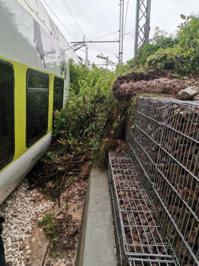 Una porzione di terreno e piante sono franati proprio mentre stava passando il convoglio finendo per colpirlo. Sul posto sono subito stati chiamati i vigili del fuoco di Cles e il personale di Trentino trasporti che hanno prima di tutto messo in sicurezza i passeggeri e ora sono al lavoro per liberare la carrozza colpita dai detriti e ripristinare la linea ferroviaria.