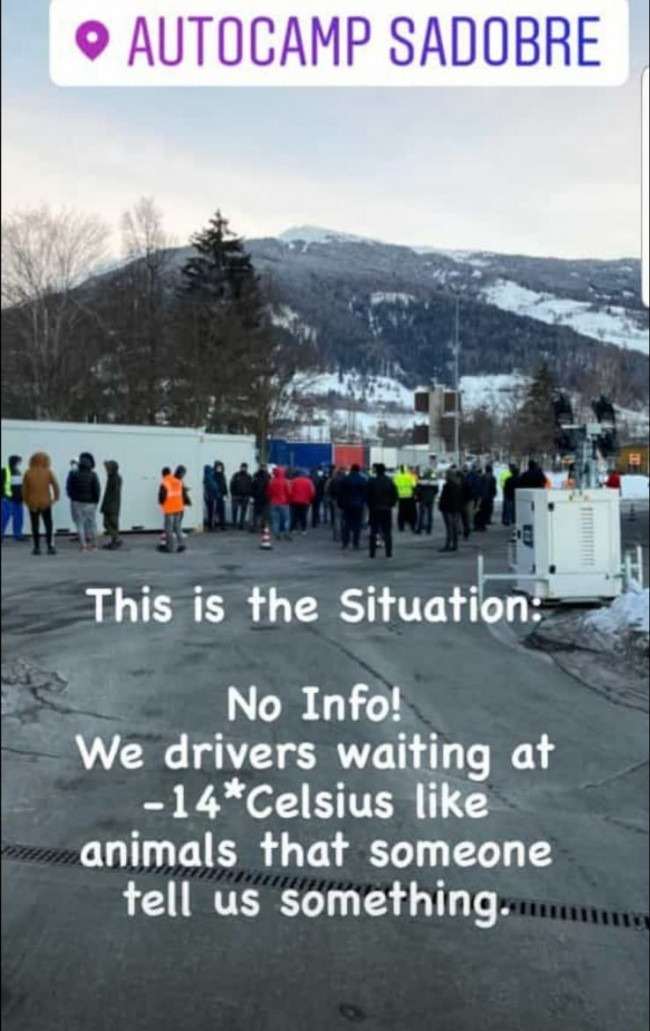 “Già ieri (14 febbraio ndr) ci sono stati molti problemi – spiega un camionista – dal canto suo l’Austria ha detto che non vuole diventare il parcheggio d’Europa per i tir, così chi arriva al confine viene fatto tornare all’area di servizio di Vipiteno 'Sadobre' dov’è stato allestito un centro per i tamponi. Sono centinaia i colleghi che da ieri e oggi sono ammassati al freddo come bestie, con temperature ben al di sotto dello zero, in attesa di poter fare il tampone”.