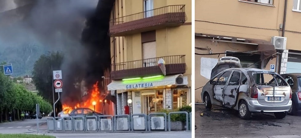 Nella serata di ieri, a Feltre, una Citroen Xsara in sosta davanti alla gelateria "Da Gimmy" ha preso improvvisamente fuoco, danneggiando anche la vettura parcheggiata a fianco e la vetrina del negozio. Provvidenziale l'intervento dei vigili del fuoco