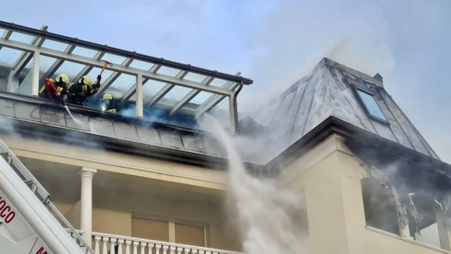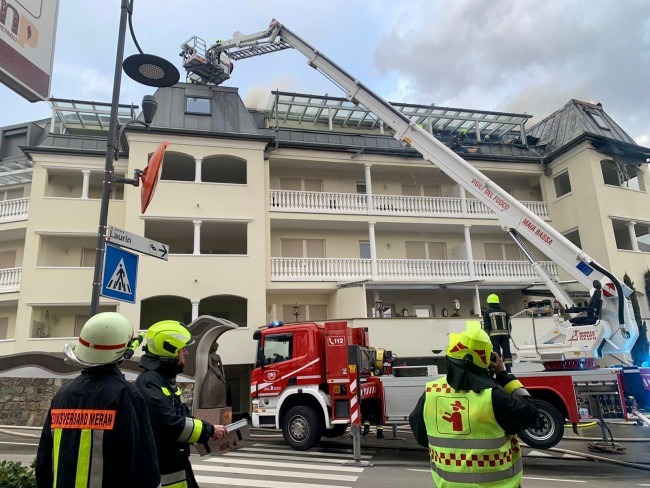 TIROLO (BZ). L’allarme è scattato nel pomeriggio di ieri, 7 febbraio, alle 15e30 quando dal tetto di un albergo a Tirolo, in Alto Adige, si alzata una densa coltre di fumo. Quando i primi vigili del fuoco sono arrivati sul posto le fiamme avevano già avvolto parte del tetto.
