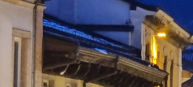 Il ghiaccio sporge pericolosamente sulla via (FOTO), i vigili del fuoco delimitano l'area ma non possono raggiungere il tetto a causa delle luminarie