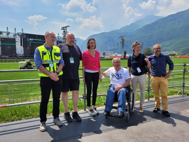 Con l'occasione gli organizzatori del concerto hanno illustrato le modalità di accesso all'area per le persone diversamente abili e fatto provare direttamente la rampa di ingresso a una delle due piattaforme riservate.