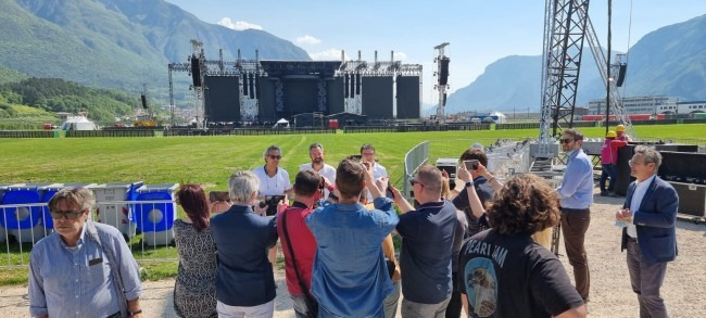 È un’area imponente quella della Trentino music arena che il prossimo 20 maggio ospiterà 120mila persone. Non mancheranno i maxi-schermi dalle dimensioni mastodontiche, 84 torri faro per illuminare lo spazio e 35 teste laser, mentre per migliorare la qualità del suono sono state posizionate 20 torri di ritardo audio. La potenza totale del sistema audio è di 750.000 watt rms. All’interno dell’area è stata realizzata anche una platea rialzata per le persone con disabilità che avranno a disposizione bagni dedicati. Per tutti gli altri sono 700 i bagni chimici, più quelli che installerà la Provincia.