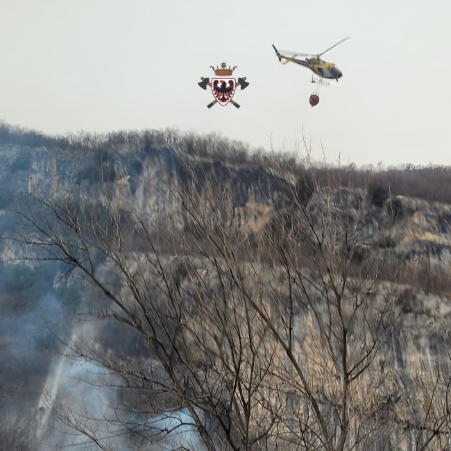 E' da ieri, domenica 26 febbraio, che un altissimo numero di vigili del fuoco è attivo per fronteggiare l'incendio divampato tra la valle dei Laghi e l'Alto Garda. Un intervento complesso per la zona impervia, il terreno particolarmente secco per la perdurante assenza di precipitazioni e soprattutto per le fiamme alimentate dal fortissimo vento. Inizialmente circoscritto, "questa notte - dice Bortoli - è ripartito in modo importante e questa mattina si è alzato in volo l'elicottero per supportare le operazioni a terra".