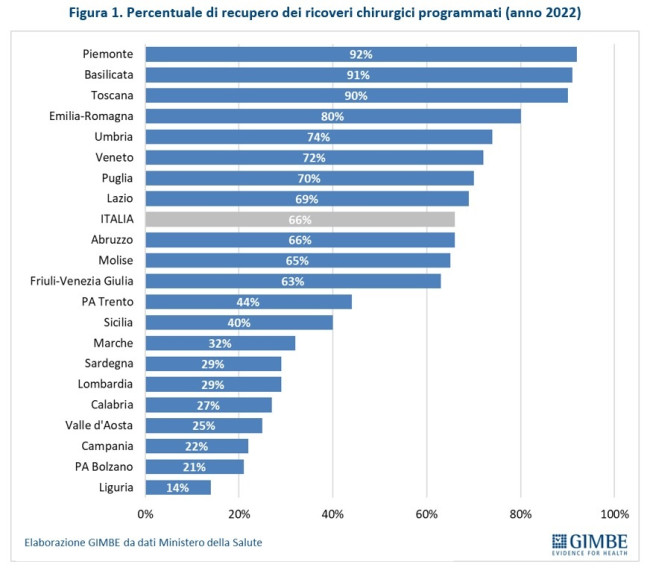Se da un lato i dati Gimbe diffusi nei giorni scorsi hanno confermato una buona performance del Trentino su diversi indici di “recupero” dopo il Covid, non può non balzare agli occhi un dato che fa sprofondare proprio la nostra provincia al di sotto della media nazionale. E' il recupero dei “Ricoveri per interventi chirurgici programmati” che portano il Trentino ad essere fermo al 44% ben al di sotto della media italiana che è del 66%.