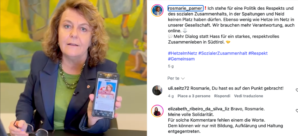 Una shitstorm pesantissima per Rosemarie Pamer che depositerà un esposto formale alla Polizia Postale e delle Comunicazioni per identificare i responsabili della denigrazione e delle offese personali