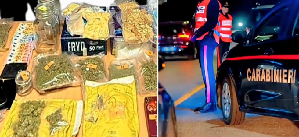La successiva perquisizione, estesa all'abitazione e alle relative pertinenze dove è stato rintracciato il secondo complice, ha permesso di scoprire un ingente deposito di droghe di vario genere.