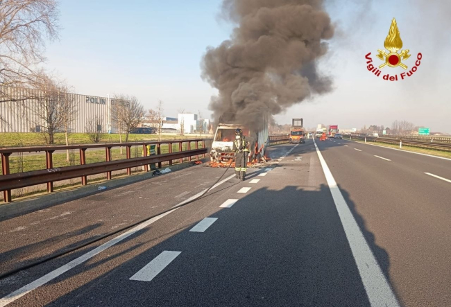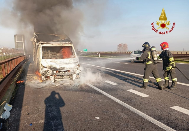 Il conducente del furgone ha notato un po' di fumo uscire dal veicolo e così ha accostato sulla corsia di emergenza. Sono subito divampate le fiamme che hanno avvolto il mezzo.