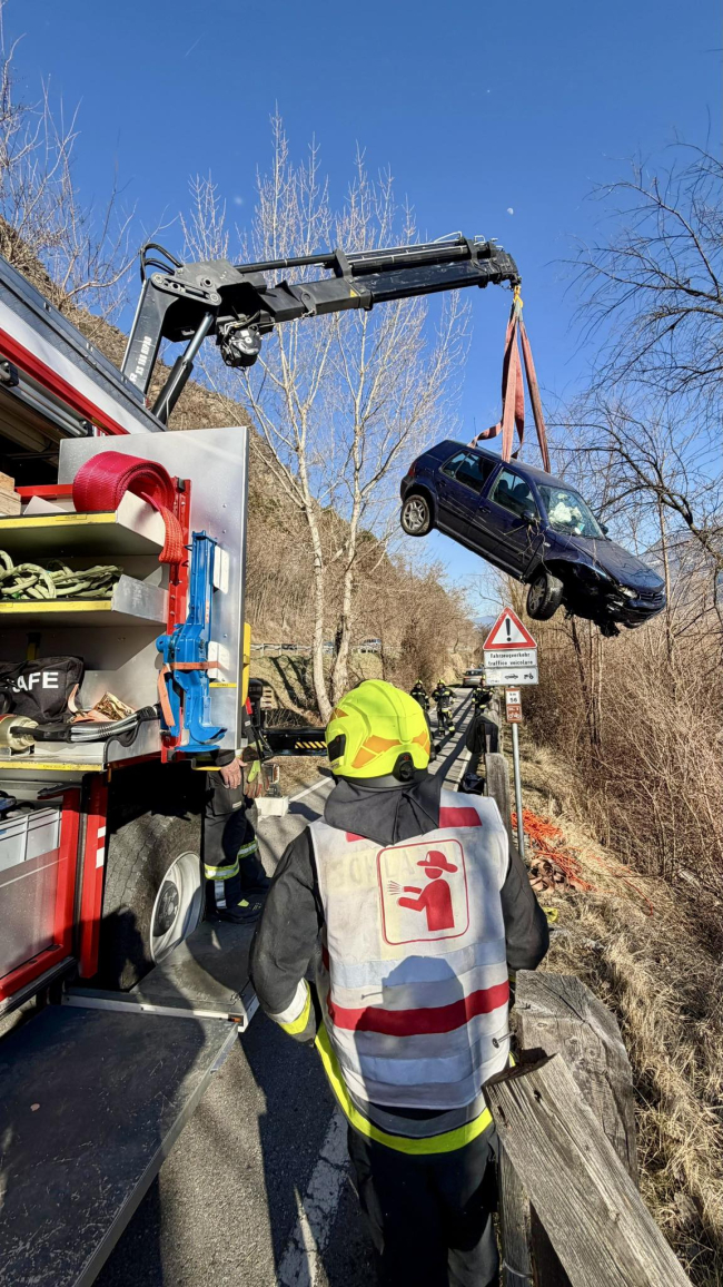 I pompieri hanno provveduto a mettere in sicurezza la zona, hanno fissato il veicolo ai cavi e poi l'hanno recuperato con l'autogru.