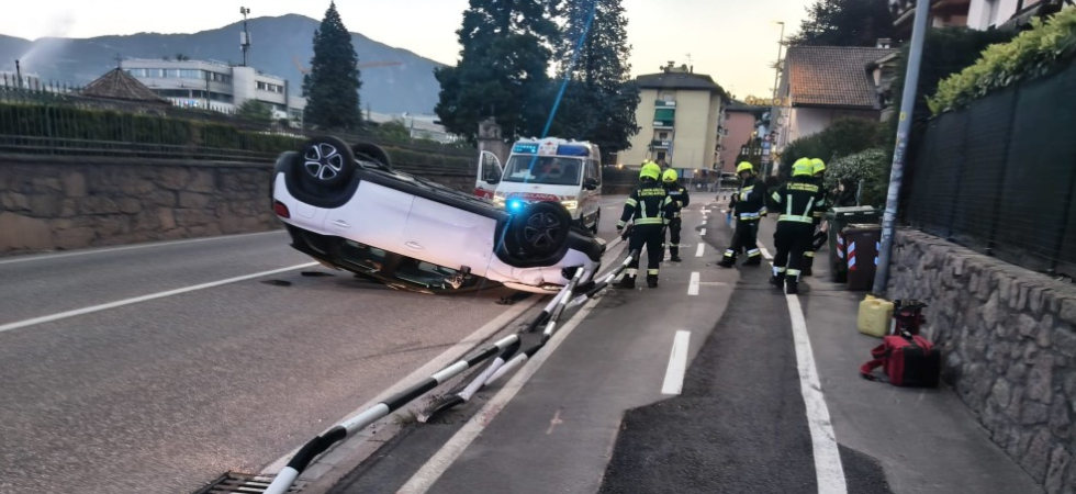 BOLZANO. Perde il controllo dell'auto in paese e il mezzo si ribalta: momenti di paura all'alba di domenica 26 aprile per un incidente stradale a San Giacomo di Laives in Alto Adige.