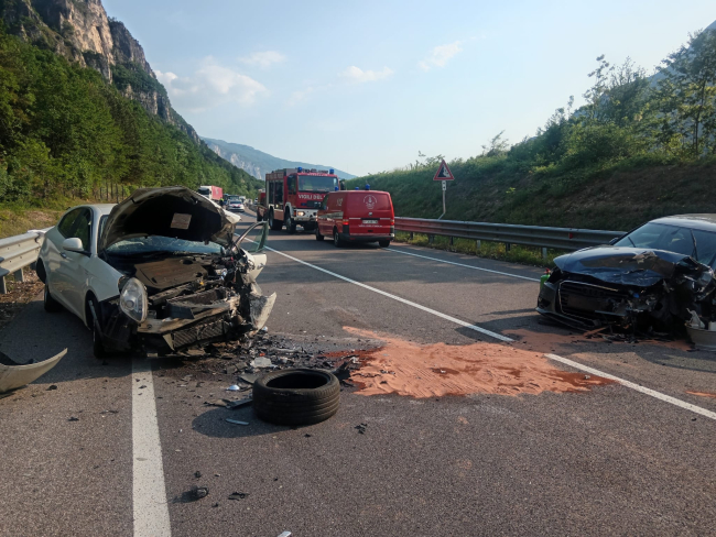 Il pauroso incidente stradale si è verificato lungo la SS 12 dell'Abetone tra gli abitati di Mattarello e Besenello, in località Murazzi. Due auto si sono scontrate frontalmente e una terza è stata coinvolta "di carambola". Cinque le persone coinvolte, che sono rimaste ferite: due ragazzi di 21 e 18 anni e una ragazza di 20 anni, trasportati all'ospedale Santa Chiara di Trento, un uomo di 48 anni e un ragazzo di 21 anni, trasferiti invece all'ospedale di Rovereto