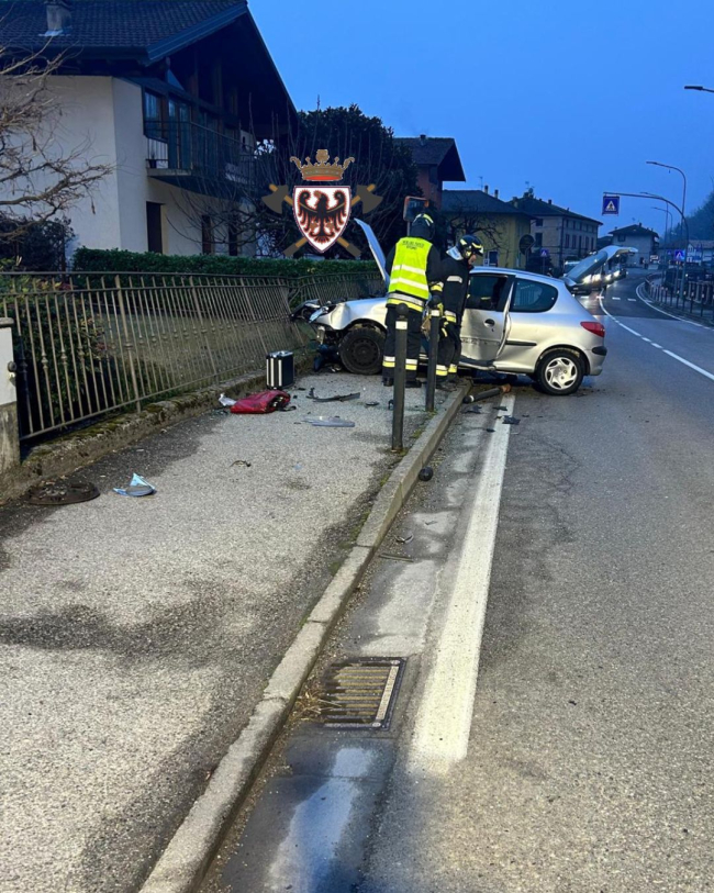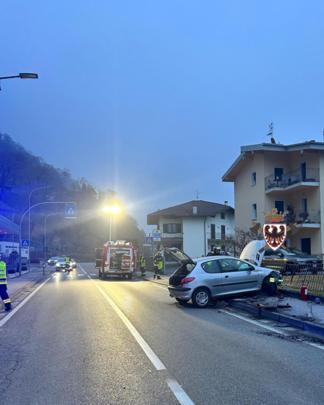 STORO. Un'auto è finita sul marciapiede e si è schiantata contro una recinzione. Intervento dei soccorsi. Una persona è stata portata all'ospedale.