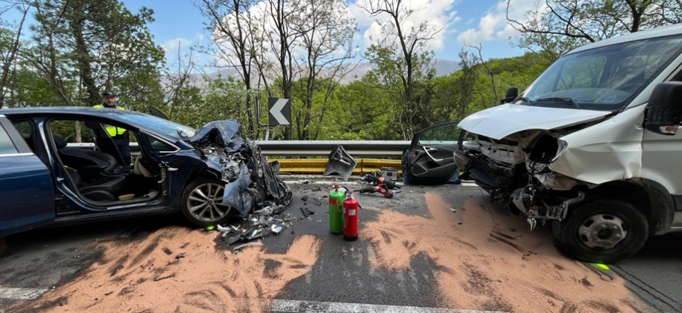 Spaventoso frontale auto-furgone (FOTO), conducente incastrata tra le lamiere della macchina. Il medico verricellato dall'elicottero